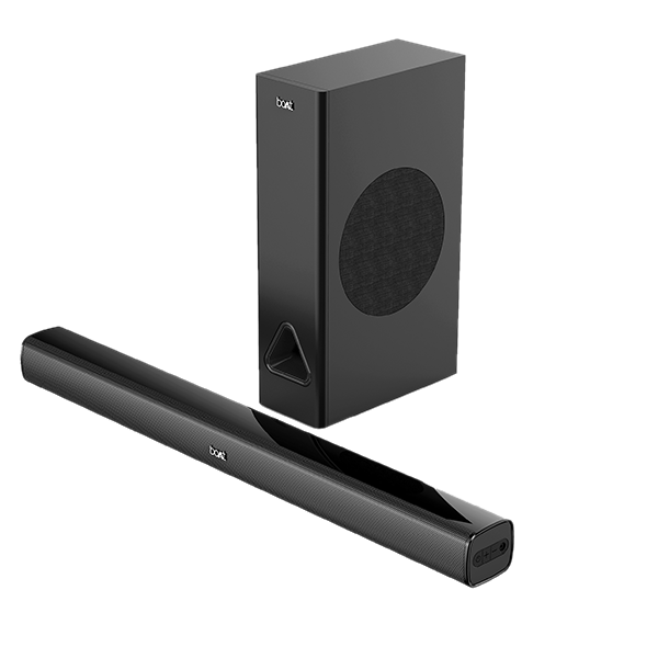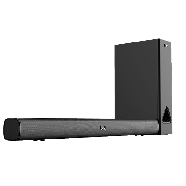 Drown yourself into a rich and never-heard-before audio experience with the AAVANTE Bar 1250 home theatre soundbar. Feel the power of the 40W RMS Soundbar and 40W Wired Subwoofer while enjoying your favorite music, movies, and more. Set the right tone for your evening with scene and mood transitions powered by boAt’s encapsulating sound and 2.1 Channel Surround Sound. Wired or wireless, play your jam your way with Bluetooth v5.0 and AUX/USB accessible via integrated function board or the detailed remote control. Elevate your music game with the feature-packed boAt Aavante Bar 1250.