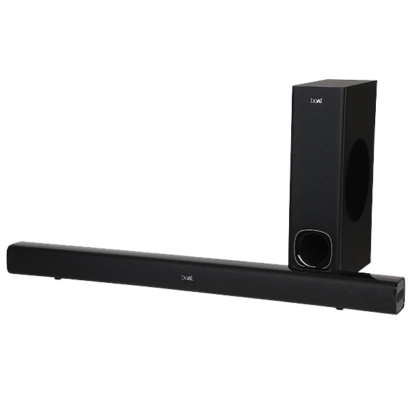 Experience the enthralling boAt Signature Sound with the Aavante 1280 Soundbar, and lose yourself to enhanced audio experiences. Slip into your zone with your favourite movies or get the parties started with the 40W RMS Soundbar accompanied by the 40W Subwoofer. The AAVANTE 1280 allows you to enjoy scene and mood transitions with its wide range of encapsulating sounds. Enhanced by a sleek superior design, soak in the 2.1 Channel Surround Sound as you plug into the comfort of your new home theatre! Go wireless with Bluetooth v4.2 or utilize the AUX/USB all accessible through the integrated function board or the detailed remote control. Take in the sights as you row down the stream of Nirvana, and bring your home to life with the boAt AAVANTE 1280.