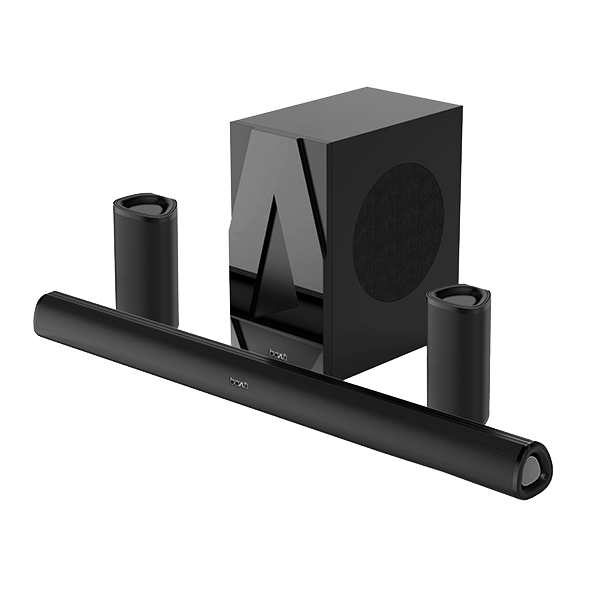 Listen to the captivating boAt Signature HD Sound with the 260W RMS sound designed to give a thrilling experience. The wired subwoofer will give you bass that’s as powerful as your movie night deserves.