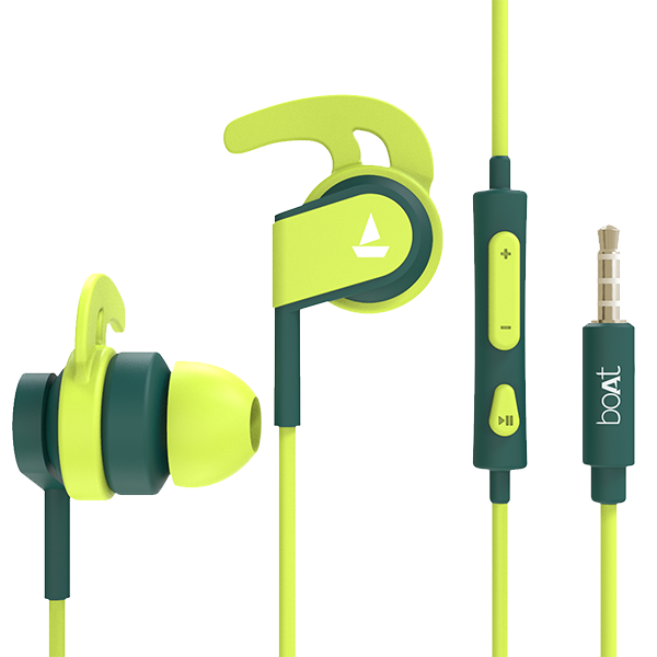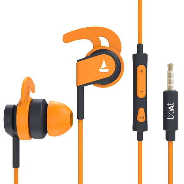 Get ready to redefine fitness fashion and utility with the wired headphone boAt Bassheads 242, it’s time to get your sport on. It carries ear hooks that are crafted from silicon to maximize comfort and a secure fit that allows you to maximize your workouts. Coated with IPX 4 sweat and water protection, the Bassheads 242 emphasizes on all-around ability with 10mm drivers that reproduce a quality sound. Move around freely with the superior coated cable that reaches comfortably from your pocket till your ears. Connect to a number of devices with ease using the 3.5mm straight jack, because there’s no stress, only sweetness when you’re riding the waves on this boAt. You can tune in and out with the pause/play button that can also take calls (With In-line Mic.) and control volume in-between exercise reputations.