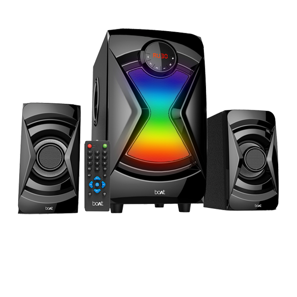 Enjoy the beats and thunderous bass with the boAt Blitz 1500 wired speaker. With 50W RMS boAt Signature Sound, experience music like never before. Whether skittering beats, your favourite video game or just a movie get a complete immersive listening experience. To set your party mood just right, the speakers come with RGB LEDs which sync with beats and a Bass Knob to set the Bass as you desire! With 5 different EQ Modes - Pop, Rock, Jazz, Classical and Country and Multiple Connectivity Modes including Bluetooth, AUX, USB, SD Card & FM Blitz will be your mood booster! With smooth remote control and a premium and sleek finish with LED display, bring life to your party with style and ease.