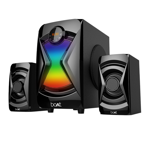 Dance to the lights and beats of your mood, as these multimedia speakers come with RGB LEDs and a Bass Knob for you to set your bass easily.