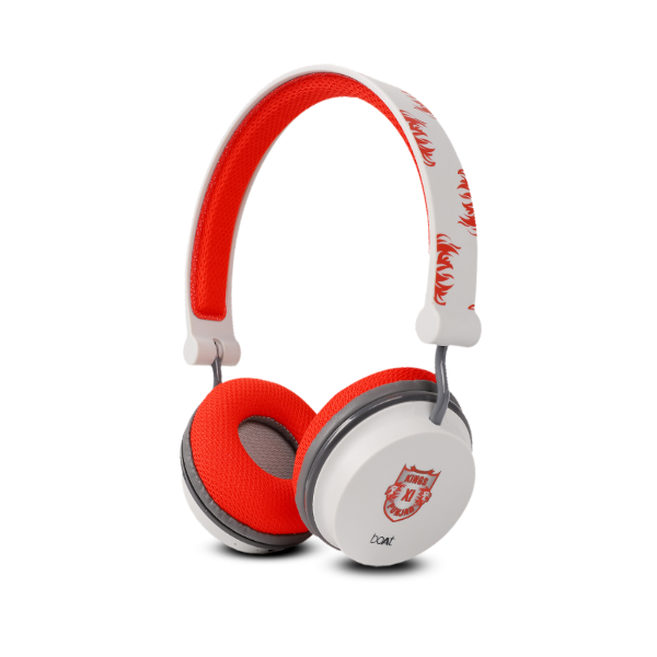 Get ready to sail with the boAt Rockerz 400 Punjab Kings edition, made for an incredible audio experience with 40mm premium drivers. Sported in the fiery colours and bright emblem of the Punjab Kings, this limited-edition model is here to help you support your favourite team! With upto 8 hours of playback time, play Punjabi or any other genre right through the day. Get HD sound and extra bass as you get ready to play! Comfortable to wear, the sleek design has been suited to give a pleasant sensation with its soft material and lightweight build. An inbuilt mic and easy access side controls allow for instant and seamless control. So, carry your style wherever you go and play the game your way with the BOAT Rockerz 400 Punjab Kings Edition.